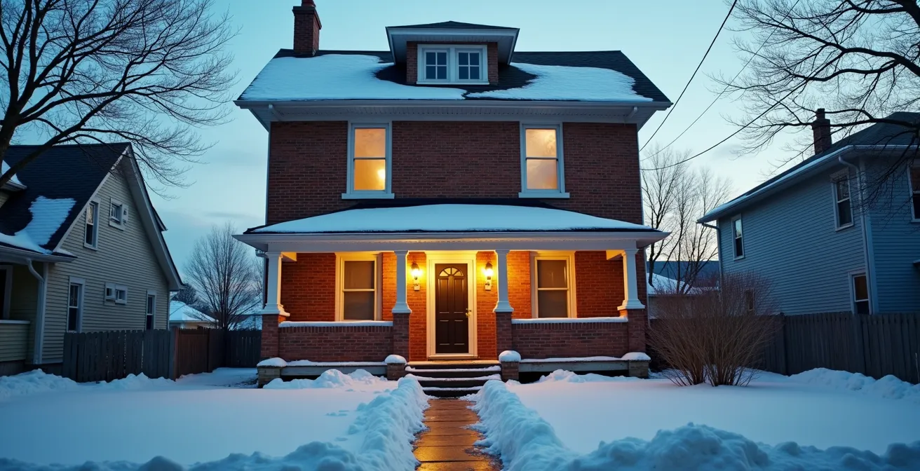 Avant même de penser à la peinture ou au parement, il faut comprendre les deux forces les plus destructrices qui s’attaquent à l’enveloppe de votre maison : l’eau sous toutes ses formes et les rayons ultraviolets (UV). L’eau s’infiltre dans les moindres fissures, et avec le cycle de gel-dégel québécois, elle agit comme un puissant levier qui fracture le béton, la brique et le bois. Les UV, quant à eux, décomposent chimiquement les liants dans les peintures, les scellants et les plastiques, les rendant cassants et inefficaces. Leur action est d’autant plus redoutable en hiver, car selon l’Organisation mondiale de la santé, la neige fraîche réfléchit jusqu’à 90% des rayons UV, doublant pratiquement l’exposition de vos façades.
